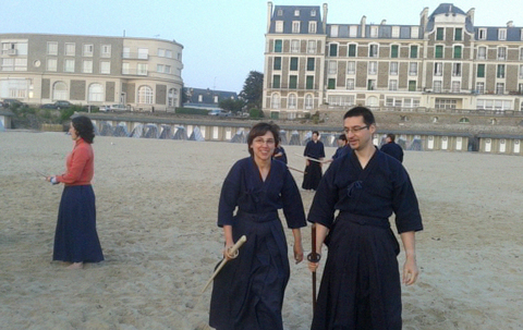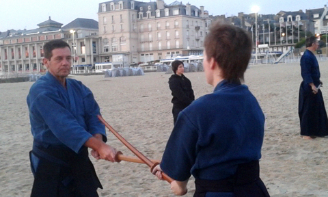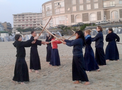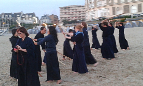 Asa kendo kata sur la plage à 6 heure du mat.
